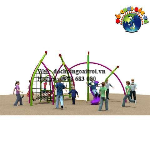 Sản phầm bao gồm 3 trụ chính uốn cong hướng đều ra 3 hướng. 1 khung hình tròn đước đặt lên khung trụ chính. Xung quang có các mô hình thép uốn khác nhau tạo hệ sinh thái đa dạng cho trẻ em leo trèo vận động rèn luyện thể lực.