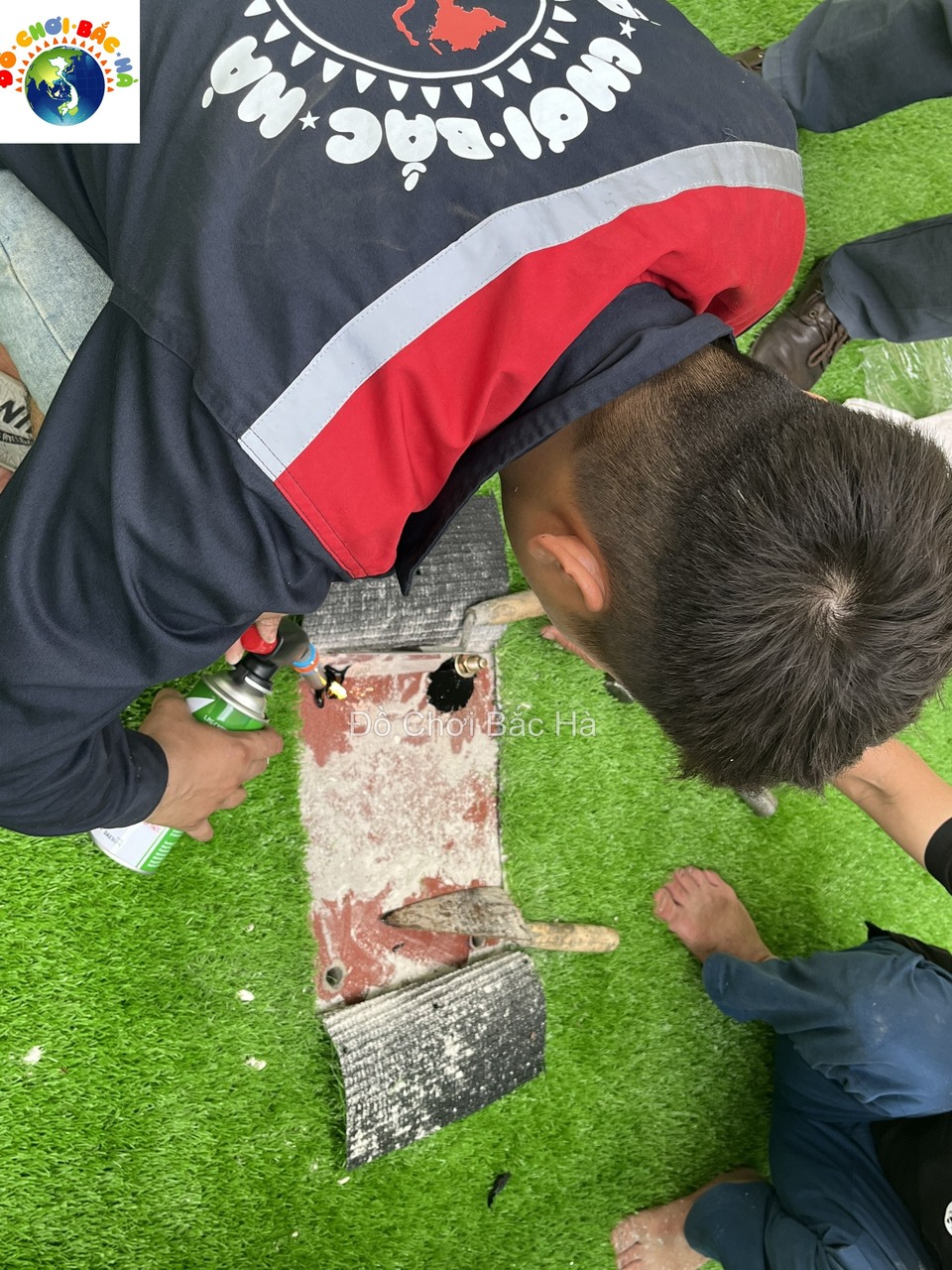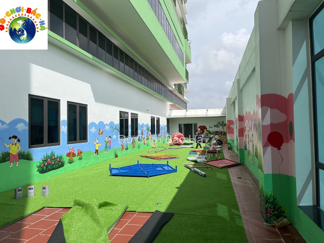 - Cỏ nhân tạo 3cm được sử dụng để tạo nên một mặt sân êm ái và an toàn cho các bé. Cỏ nhân tạo không chỉ đẹp mắt mà còn giúp giảm nguy cơ chấn thương khi các bé chơi đùa.