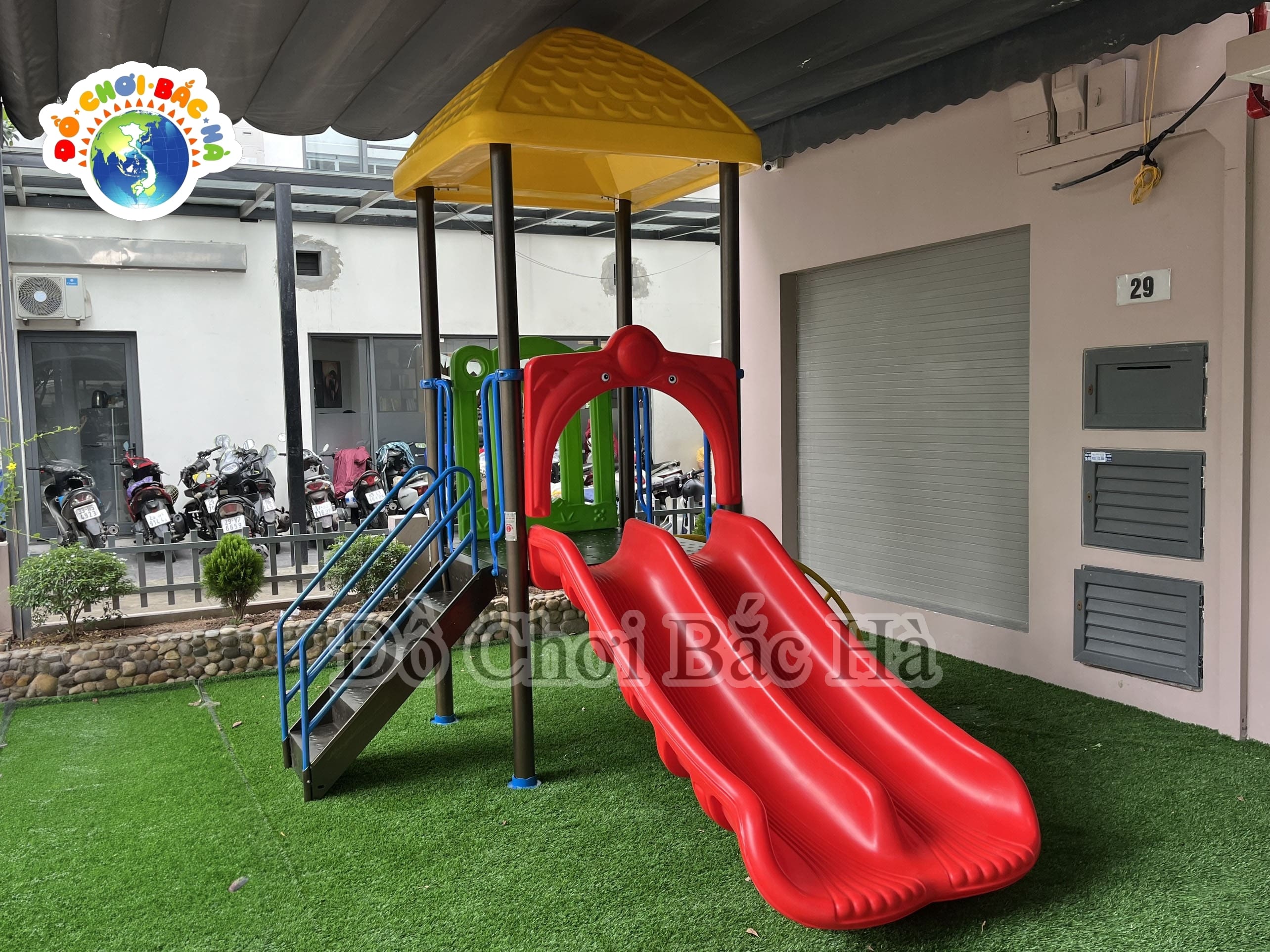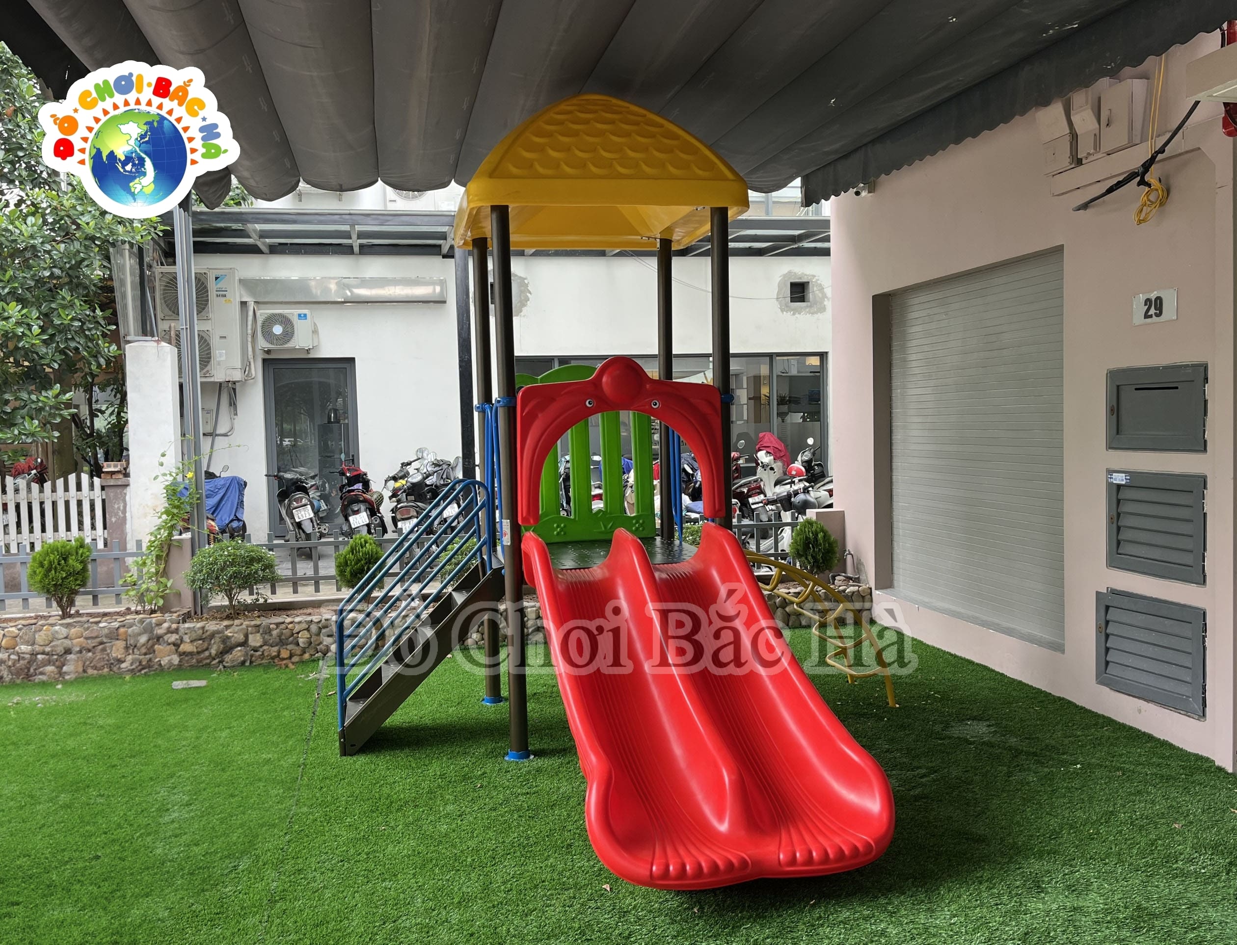 Đồ chơi bắc hà tự hào giới thiệu sản phẩm, Nhà Chơi Cầu trượt 1 Khối đã được lắp đặt thành công, cho trường mầm non sakura kis tại khu dô thị gaduma Quận Hoàng Mai, Hà Nội