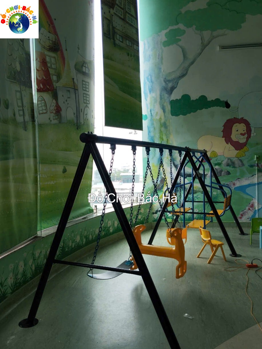- Hệ thống treo ghế: Sử dụng xích sắt phi 8 sơn tĩnh điện chống gỉ, hoặc cáp bọc nhựa phi 10, tùy thuộc vào loại ghế xích đu, đảm bảo an toàn tuyệt đối cho các bé khi sử dụng.