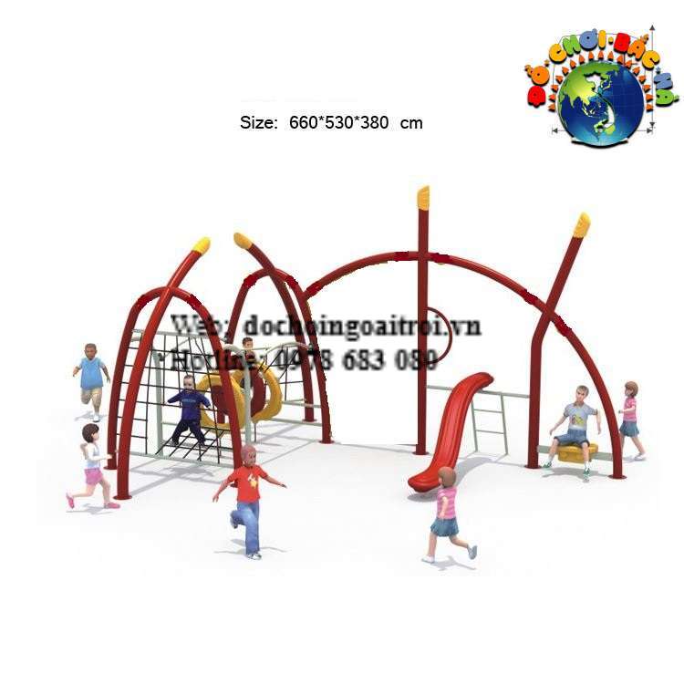 Xung quang có các mô hình thép uốn khác nhau tạo hệ sinh thái đa dạng cho trẻ em leo trèo vận động rèn luyện thể lực.