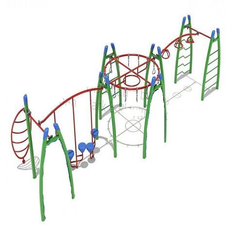 Sản phầm bao gồm 1 vách leo có vấu neo nuisi, 1 vách đứng leo dây thừng, 1 vách xoắn leo trèo. Xung quang có các mô hình thép uốn khác nhau tạo hệ sinh thái đa dạng cho trẻ em leo trèo vận động rèn luyện thể lực.
