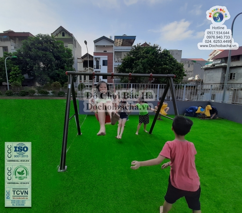 Chất liệu : Thép ống, hộp mạ kẽm hoặc nhúng nóng sơn tĩnh điện toàn bộ đảm bảo bền đẹp và an toàn cho trẻ