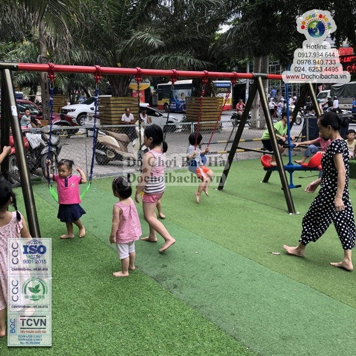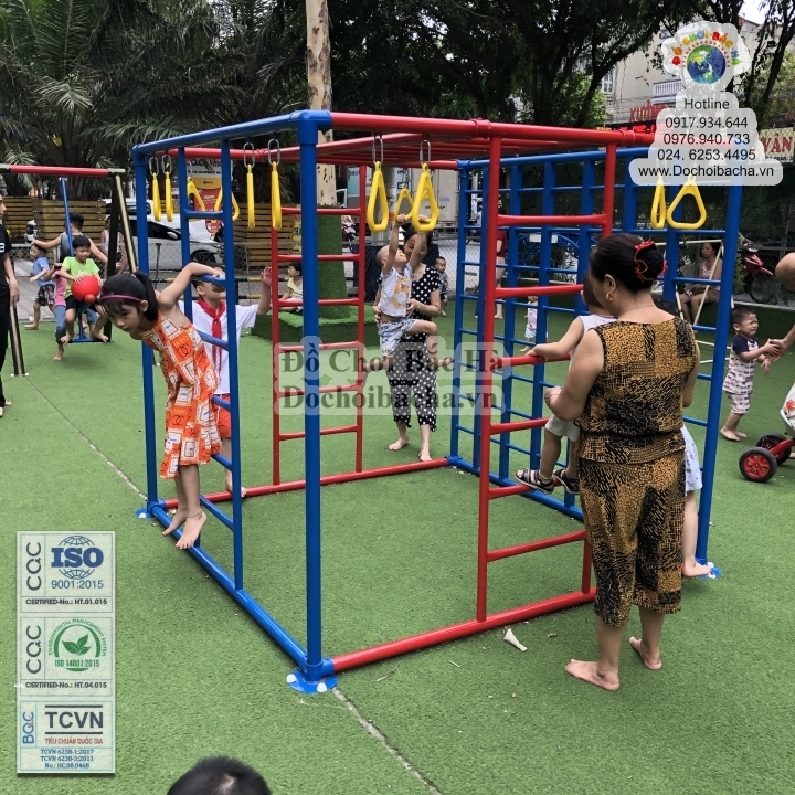 Chất liệu : Thép ống, hộp mạ kẽm hoặc nhúng nóng sơn tĩnh điện toàn bộ đảm bảo bền đẹp và an toàn cho trẻ