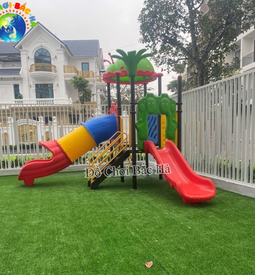 Các chi tiết mái, cầu trượt, vách ngăn , phù điêu, ghế ngồi … được làm bằng nhựa LDPE NHẬP KHẨU nguyên chiếc.