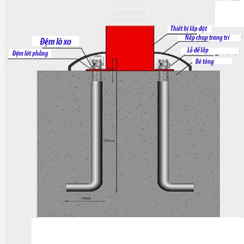 - Cách 1: bắn vít nở sắt trên mặt nền bê tông dày 15 cm đã có sẵn