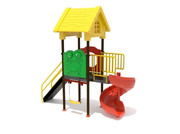 Cầu trượt thẳng đơn, cầu trượt thẳng đôi:có lòng máng trượt rộng 60 cm, độ cao thành máng 15 cm dài 2,1 m hoặc 2,45m với đủ các màu sắc xanh lam, xanh lá cây, vàng, đỏ...