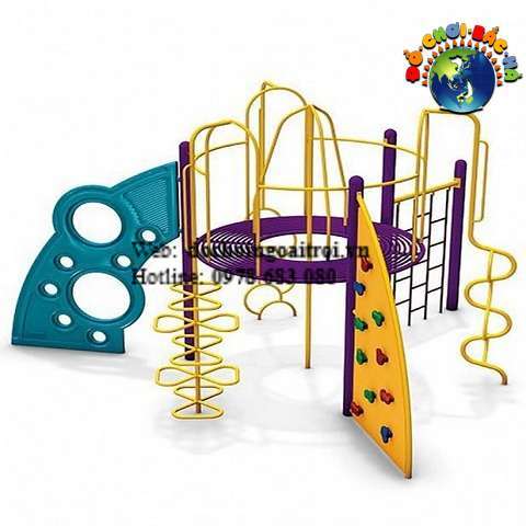 Xung quang có các mô hình thép uốn khác nhau tạo hệ sinh thái đa dạng cho trẻ em leo trèo vận động rèn luyện thể lực.