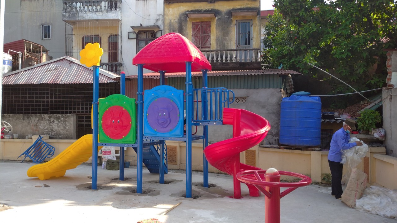 Chất liệu : Thép ống, hộp mạ kẽm hoặc nhúng nóng sơn tĩnh điện toàn bộ đảm bảo bền đẹp và an toàn cho trẻ