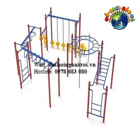 Xung quang có các mô hình thép uốn khác nhau tạo hệ sinh thái đa dạng cho trẻ em leo trèo vận động rèn luyện thể lực.